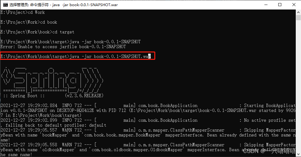 之后打开cmd输入命令 java -jar war包的名字.war即可成功运行