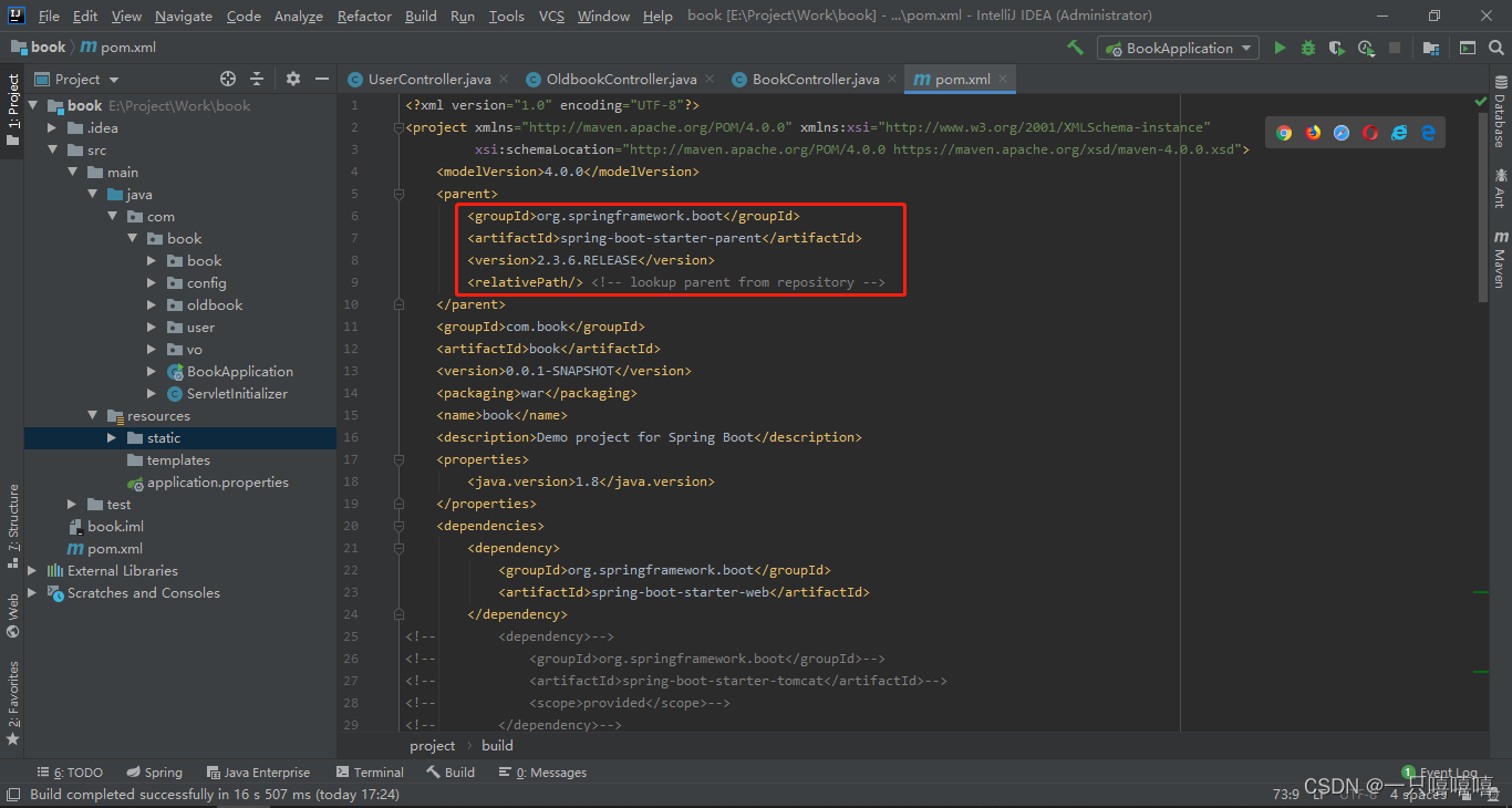首先将pom.xml项目中的内置Tomcat依赖删除
