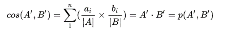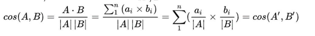 假设向量 A和B归一化后的向量分别是 A’和B’ ,则