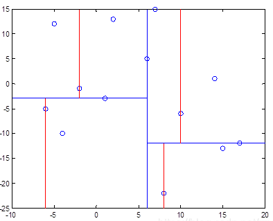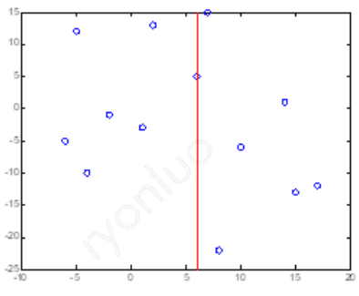 - 选取方差值最大的数据维度为坐标轴,以训练集中的所有数据坐标中的中位数作为切分点,将超矩形区域切割成两个子区域。将该切分点作为根结点,由根结点生出深度为1的左右子结点,左节点对应坐标小于切分点,右结点对应坐标大于切分点。
