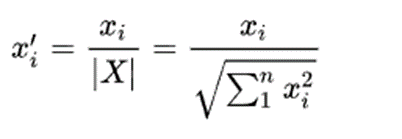 介绍距离计算之前,简单了解一下向量归一化公式,归一化后,向量模长|X’|等于1。