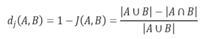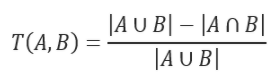 杰卡德相似系数计算数据集之间的相似度,计算方式为:数据集交集的个数和并集个数的比值。计算公式可以表示为: