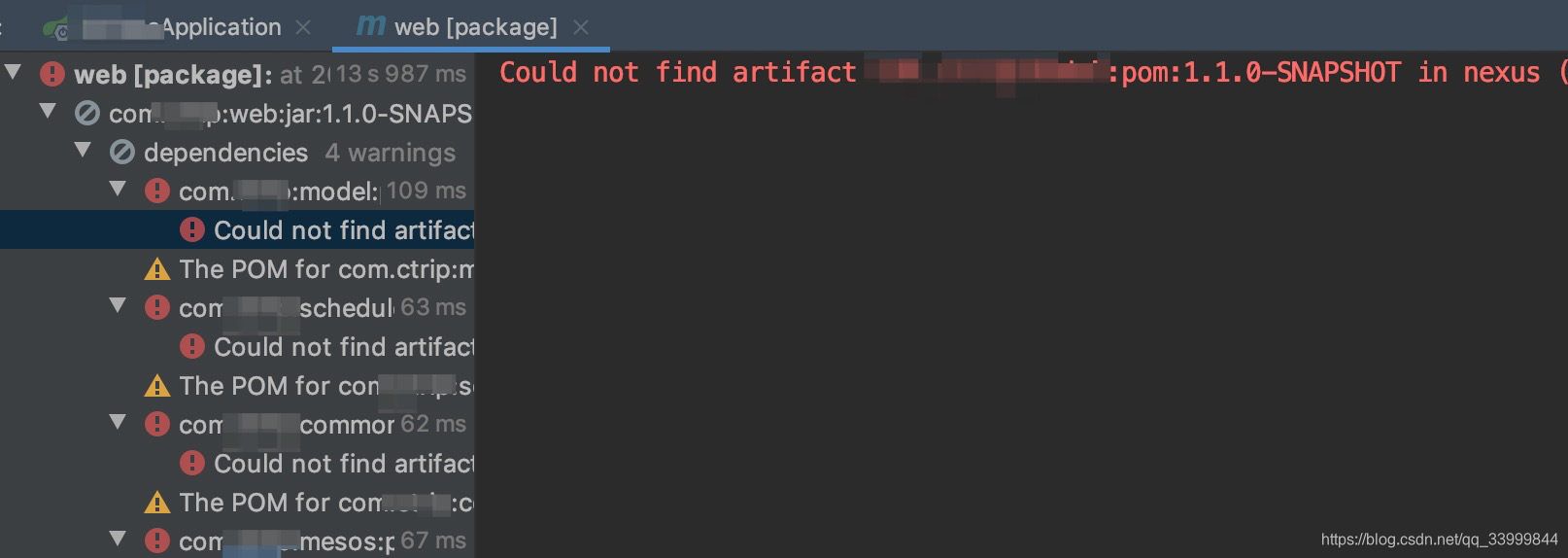 异常原因:web的module需要其他module的包,不能直接打包;需要先有其他包...
