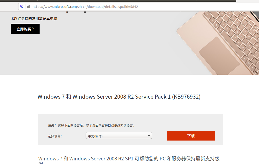 问题:安装程序无法继续。本程序需要您将此虚拟机上安装的操作系统更新到SP1