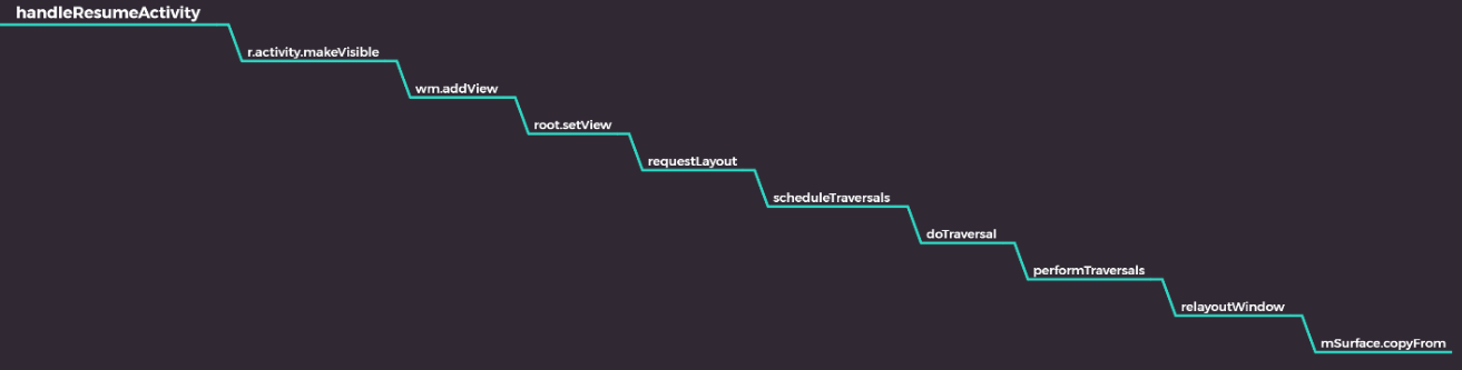 - 当Activity创建的时候会走到Activity的onCreate这个生命周期函数,同样的当应用到前台的时候,会AMS会通过Binder调用最终调用调handleResumeActivity,最终是在relayoutWindow的时候,ViewRootImpl成员变量mSurface才真正赋值,到这里ViewRootImp,通过copyFrom的方式拥有了自己的Surface
