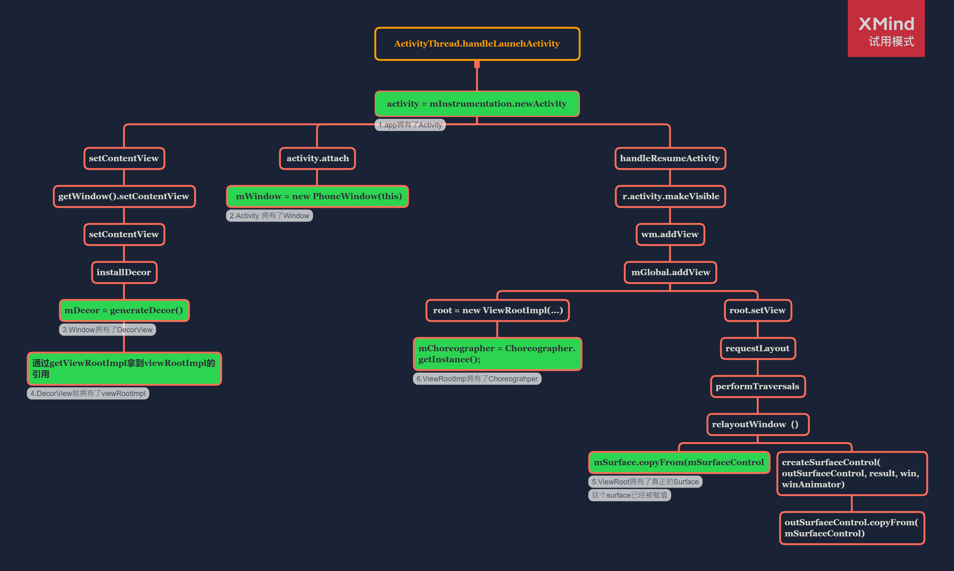 2.1 Activity、PhoneWindow、DecorView、ViewRootImpl、Choreographer、Surface的创建和关系