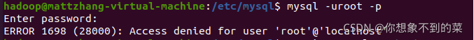 update user set plugin='mysql_native_password' where user='root'如果为了安全性,设置了用户验证,必须使用sudo,才能登录,出现如下情况:(尽量不要设置ubuntu用户在验证,否则会很麻烦)