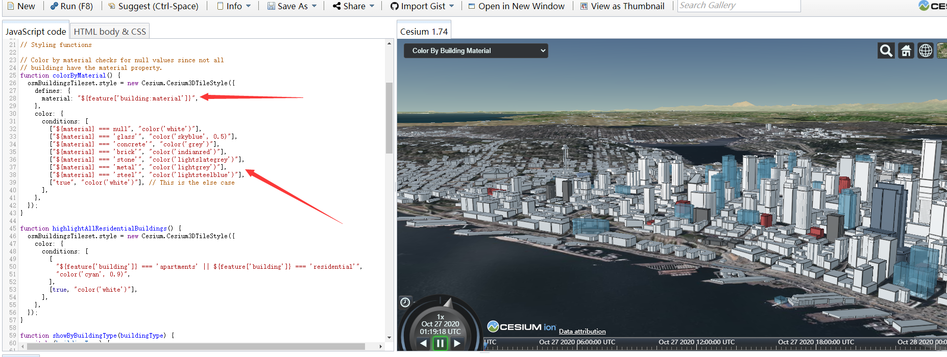 8、个人觉得这个沙盒跟1很像,都是通过3D Tiles Styling language 这个语言去改变3dtiles中部分数据的外观
