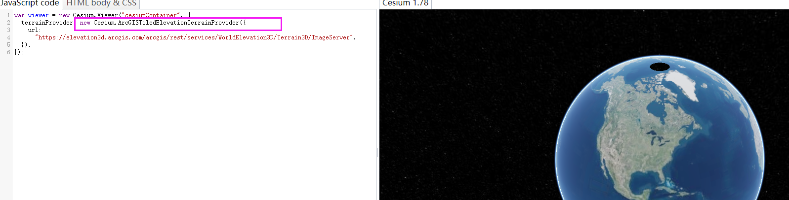 沙盒:https://sandcastle.cesium.com/?src=ArcGIS%20Tiled%20Elevation%20Terrain.html&label=All