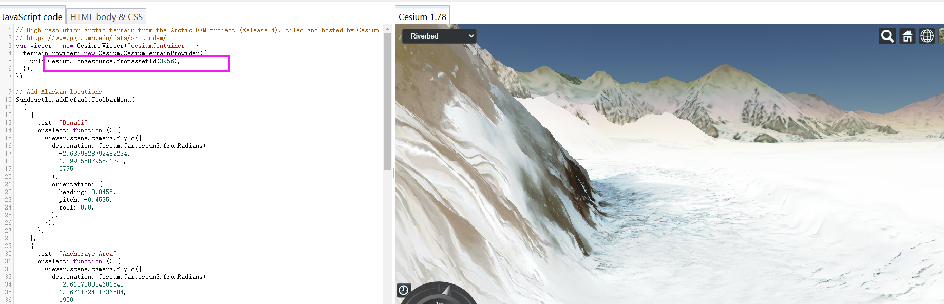 沙盒:https://sandcastle.cesium.com/?src=ArcticDEM.html&label=All