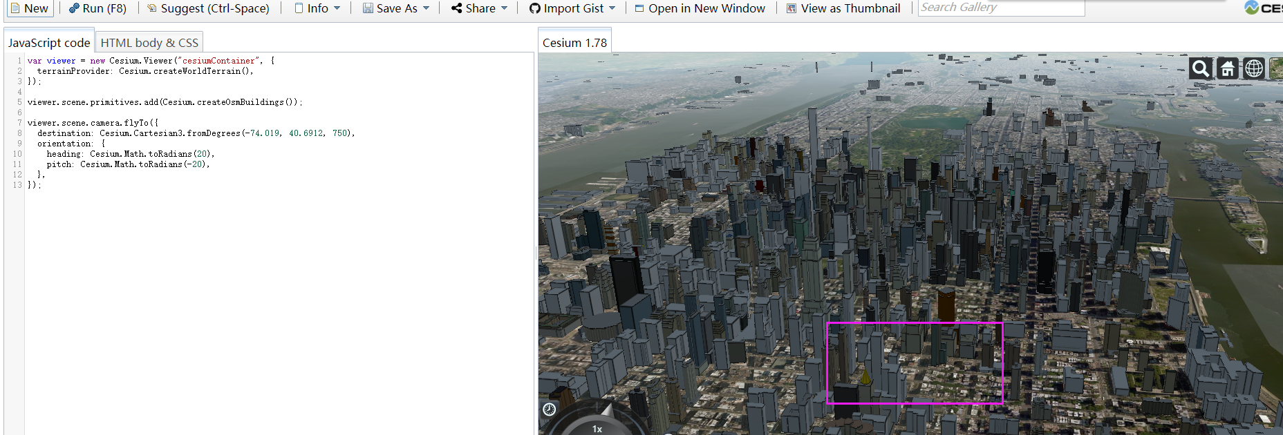 沙盒:https://sandcastle.cesium.com/?src=Cesium%20OSM%20Buildings.html&label=All