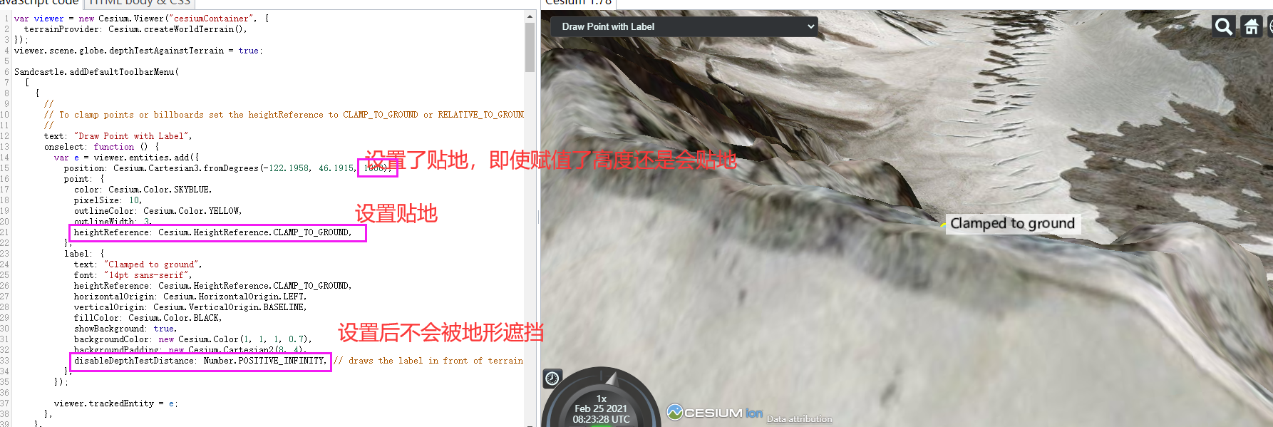 Cesium.HeightReference.CLAMP_TO_GROUND//表示这个位置被固定在地形上