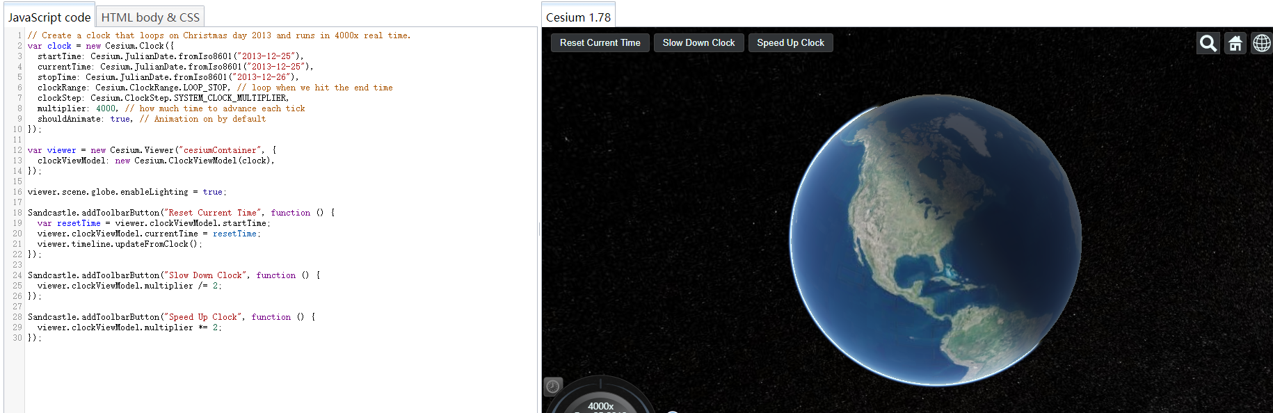 沙盒:https://sandcastle.cesium.com/?src=Clock.html&label=All