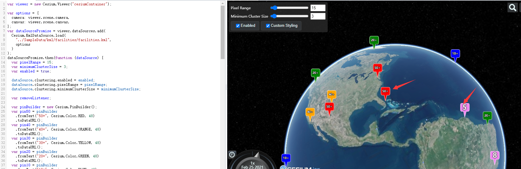 沙盒:https://sandcastle.cesium.com/?src=Clustering.html&label=All