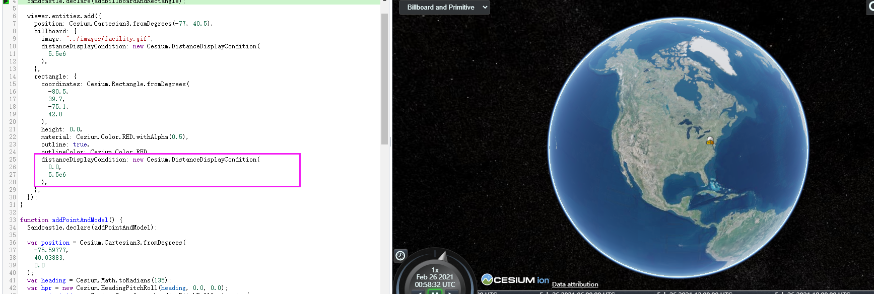 69、设置entity能看到的距离范围,主要通过 设置distanceDisplayCondition: new Cesium.DistanceDisplayCondition(num, num)控制