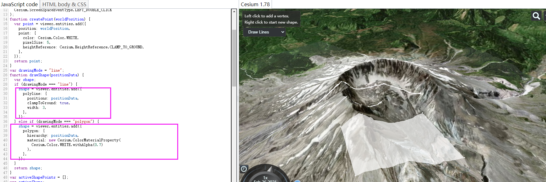 沙盒:https://sandcastle.cesium.com/?src=Drawing%20on%20Terrain.html&label=All