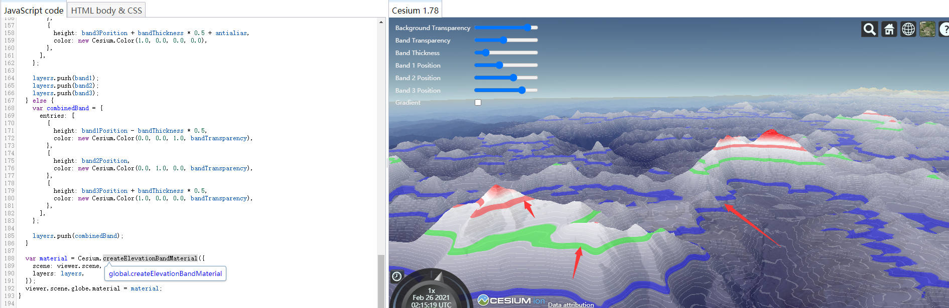 沙盒:https://sandcastle.cesium.com/?src=Elevation%20Band%20Material.html&label=All
