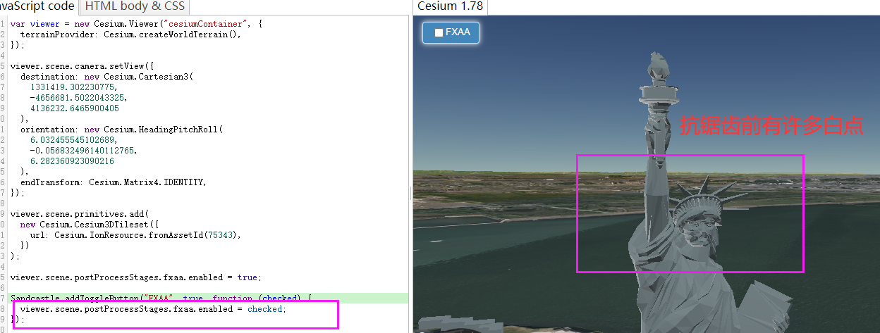 沙盒:https://sandcastle.cesium.com/?src=FXAA.html&label=All