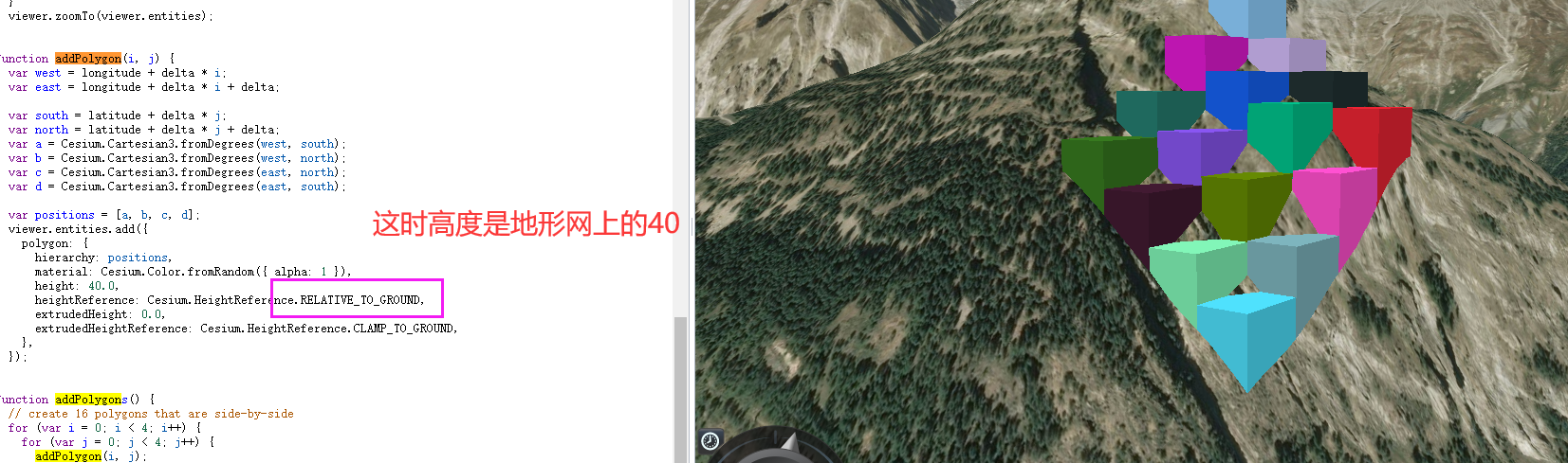 Cesium.HeightReference.RELATIVE_TO_GROUND//表示这个位置高度是指地面以上的高度
