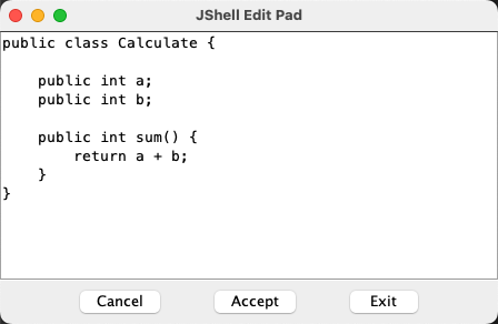 在jshell中也可以函数来封装操作,比如下面就是一个定义求和函数并调用它的例子: