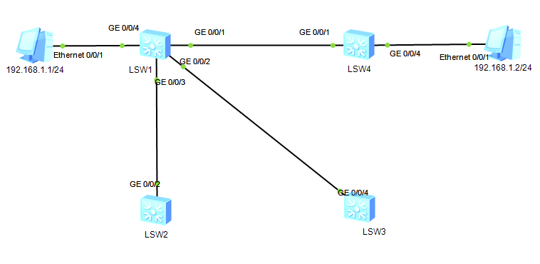 注:交换机与交换机之间,理论上不应该配置成边缘端口,除非拓扑中没有二层环路。