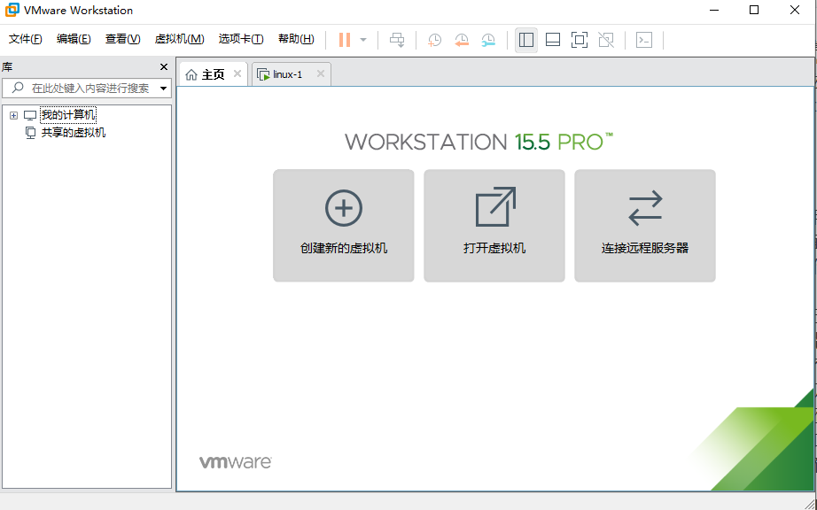- 首先、你需要先安装一个VMware Workstation这个软件,安装步骤非常无脑,下一步就完事,然后再找个秘钥就ok了。安装好如下(我用的是15.5PRO,其他版本也不影响,操作基本相同):