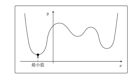 如果误差总和函数不是二次函数,而是更加复杂的函数呢?比如下面的图形,如何求最小值? 它的函数可能是: