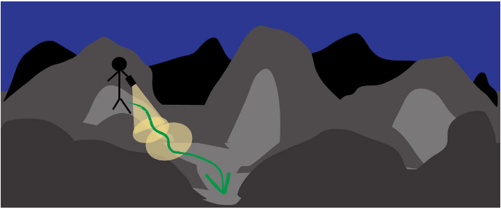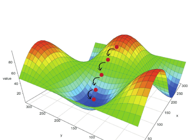 寻找下山的路:在任何一个地方,都寻找地势最低的地方走,假如你像孙猴子一样有无数个分身 , 从山顶不同的位置出发,当所有分身都找到个无法在下降的点时,比较所有点的地势,找出最低的点(防止你在某个山沟,却认为到了山下)就是基本确认到达山底。