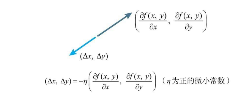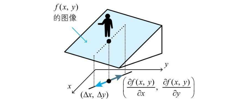 根据上面这个公式 , 我们就知道 如何调整我们的坐标 x ,y . 举例 ,在(x =1 , y =3)点处 ,如何决定下一步往哪走?,分别求出