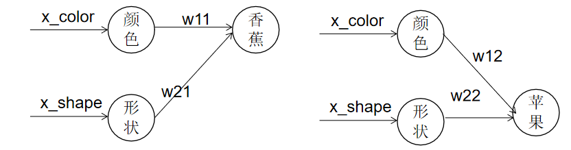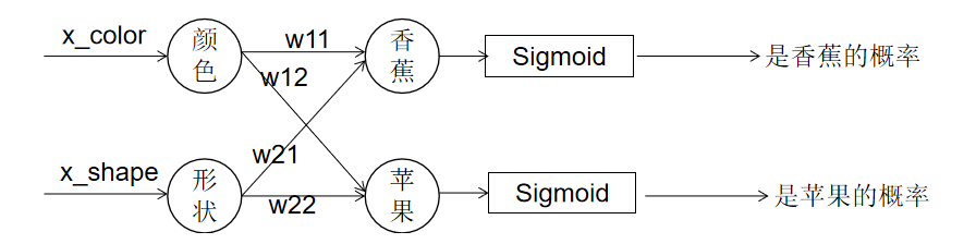 P香蕉 = Sigmod (X_color * w11 + X_shape * w21)