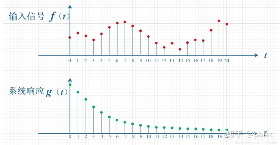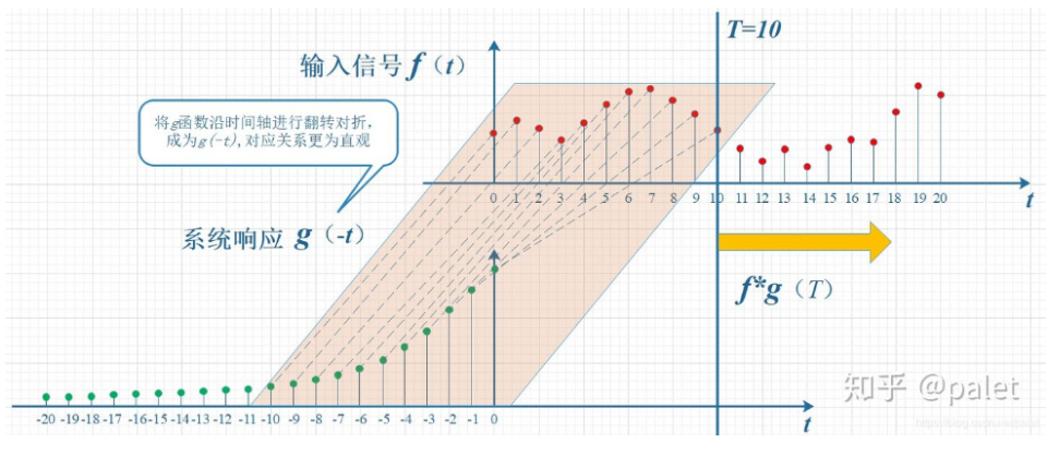 一个很形象的例子 : 一巴掌抽在脸上 ,脸肿了 , 随着时间推移 , 脸会慢慢消肿 , 假设脸肿的程度可以叠加 , 那么在 0-t 的时间内,不停的抽 , 在t 时刻,脸肿的程度就是 0-t 时间的卷积。用图像表示 就是: