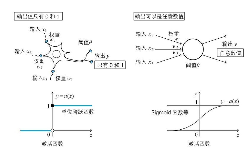 有感知机 构成的网络机构称为人工神经网络,与生物神经元的对比