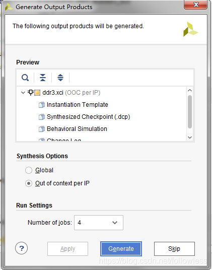 在使用xilinx的vivado生成ip时候,有一个globe和out ofcontex per ip的选项,如下图: