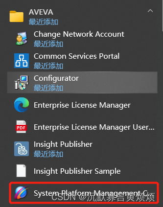 (1)在AVEVA文件夹目录下,选择并打开“System Platform Management Console”(简称SMC)
