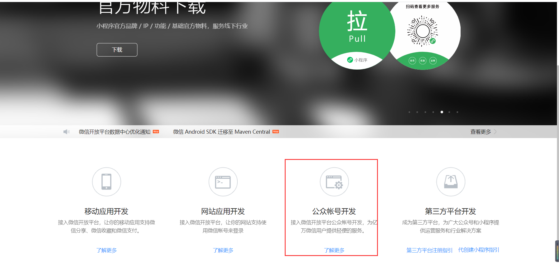 微信开放平台也有公众号开发,不过点进去会发现它让你跳转到微信公众平台。