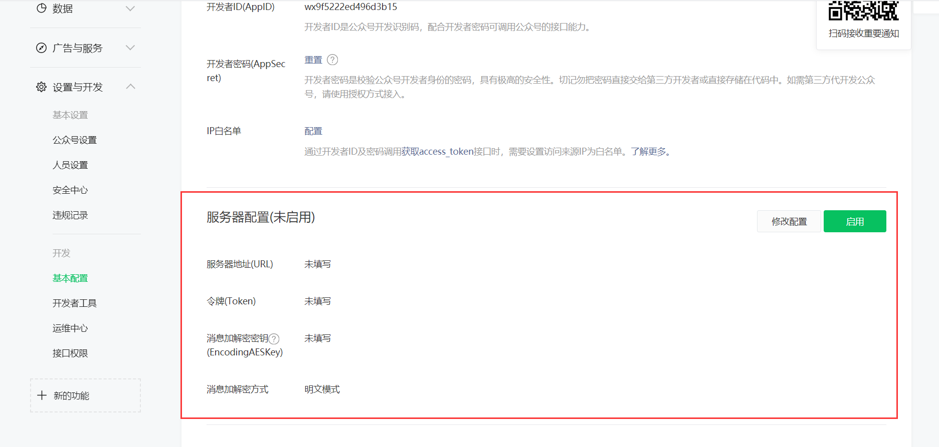 验证URL有效性成功后即接入生效,成为开发者。进入成功后微信服务器与开发者的服务器建立了连接,便可进一步进行业务开发和接口调用。