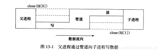 管道能在父进程、子进程间传递数据,利用的是fork调用之后两个管道文件描述符(fd[0]和fd[1])都保持打开。一对这样的文件描述符只能保证父、子进程间一个方向的数据传输,父进程和子进程必须有一个关闭fd[0],另一个关闭fd[1]。比如,我们要使用管道实现从父进程向子进程写数据,就应该进行如下操作: