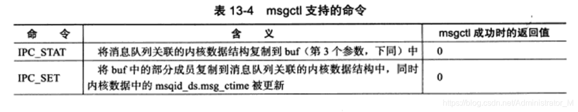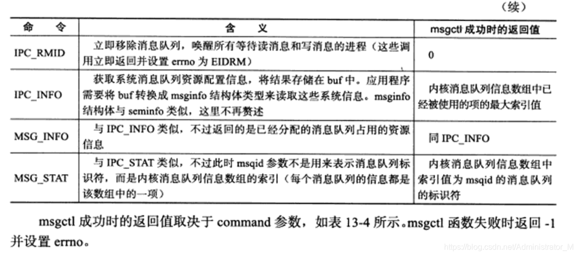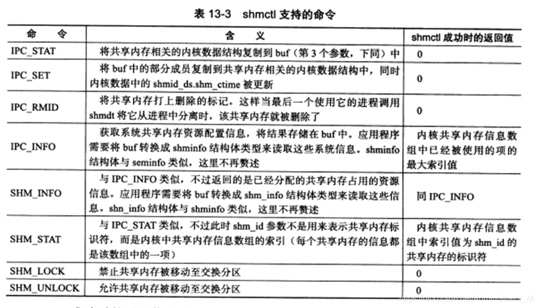semctl成功时的返回值取决于command参数,如表。semctl失败时返回-1,并设置errno。