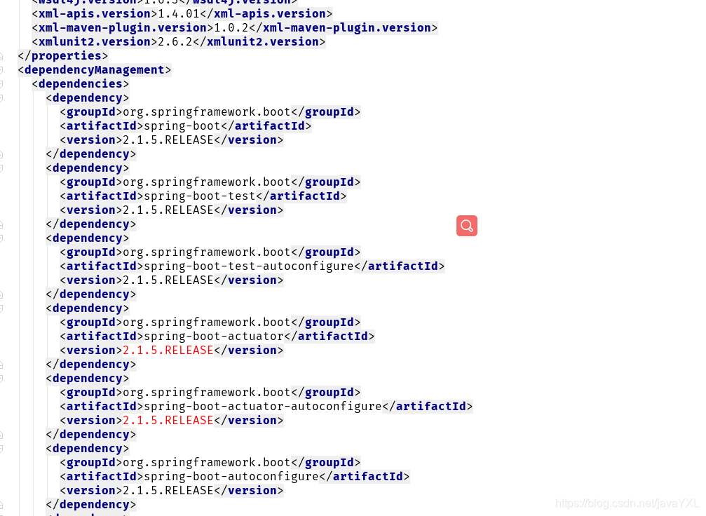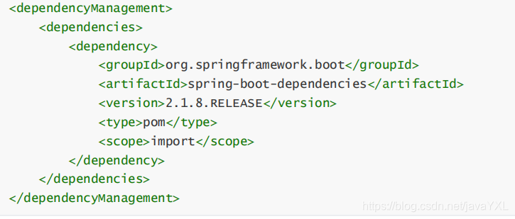 这里我们可以看到真对版本的定义和dependencyManagement节点,这下明白SpringBoot项目中部分依赖不需要写版本号了吧。