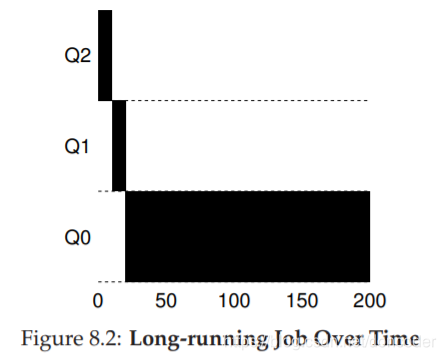 • 规则 4a: 如果一个任务用完了他的时间片,那么他的优先级会被减少(往下面的队列移动)。