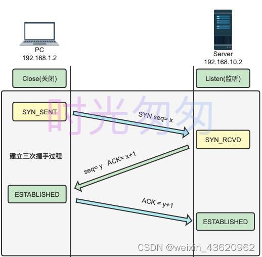 同时网络中三次握手的原理图也放上来一个用来我们做对比。