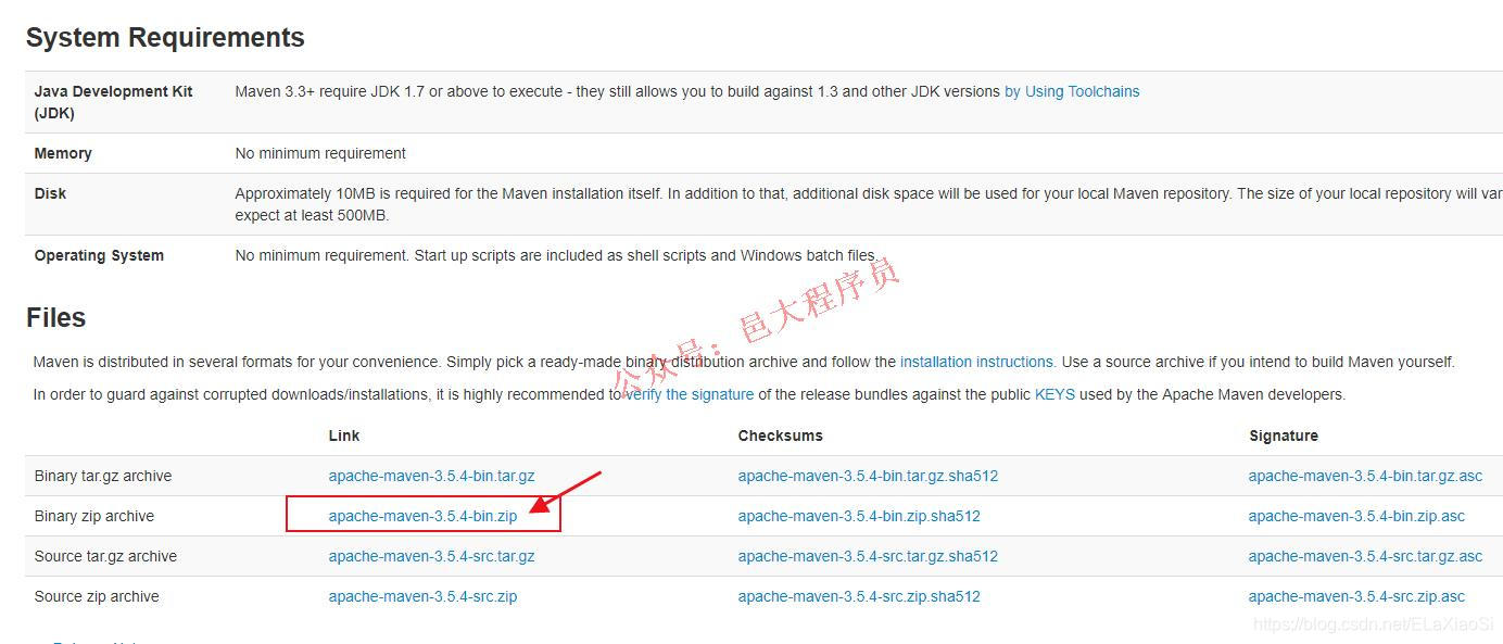 3、 官网下载地址如下http://maven.apache.org/download.cgi,点这里下载(如果版本更新,在这里可以找到旧的版本https://archive.apache.org/dist/maven/maven-3/)