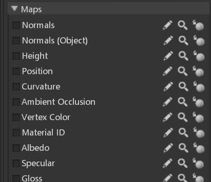 烘焙,就是将高模上的细节信息烘焙到几张贴图上来,将这 几张贴图贴到低模上,也可以让低模拥有高模上的所有细节。我们通常都用Sp或Toolbag这2款软件来烘焙,把低模和高模的枢轴都归于世界原点, 导入到这2款软件中, 勾选我们所需要烘焙的贴图 然后就可以直接烘培了。