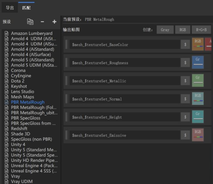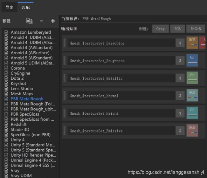 把烘焙了的贴图导入我们通常最常用的SP这款软件来制作PBR贴图。 一般找一个你想要的材质然后再进行深加工, 调整成为你需要的样子后再输出到你需要的软件里, 根据不同的需求, 会输出不同的贴图。