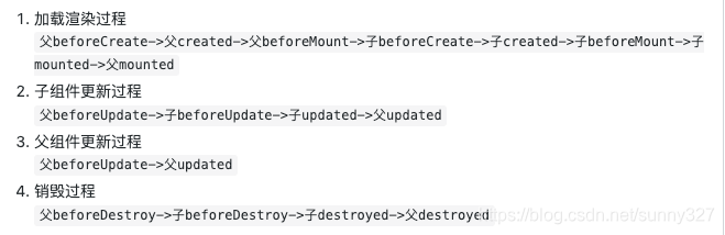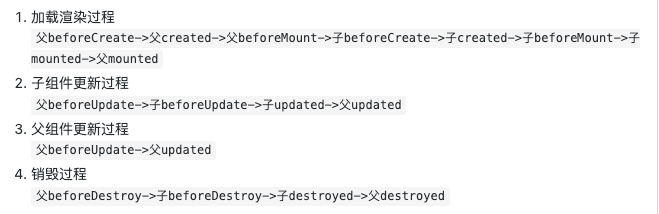 > 注意:问题是我返回时activated中的alert并没有执行,但是确实可以调用接口了,这里我觉得应该是子组件和父组件渲染顺序的问题了。父组件和子组件渲染的顺序是:父组件beforeCreate -> 父组件created -> 父组件 beforeMount -> 子组件beforeCreate -> 子组件created -> 子组件 beforeMount -> 子组件mounted -> 父组件mounted