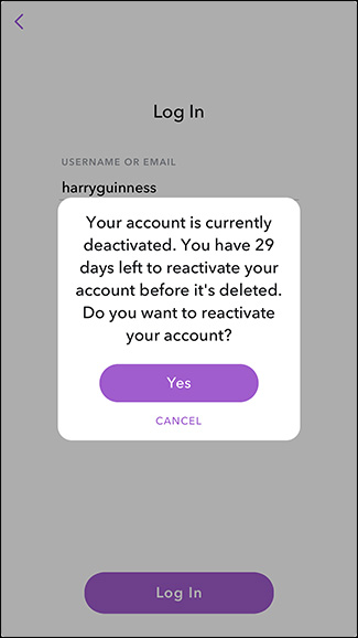 在30天内的任何时间,如果要恢复Snapchat帐户,只需通过Smartphone应用程序登录即可。 系统将询问您是否要重新激活您的帐户。 点击“是”,所有操作将与以前一样。