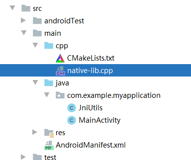 选择Native C++选项,创建出的项目会自动创建一个cpp文件夹,文件夹内容如下