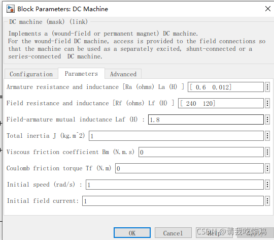 Armature resistance and inductance [Ra (ohms) La (H) ]:电枢电阻和电感