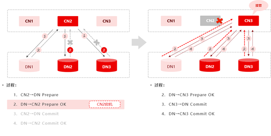 针对上述问题,GBase 8c优化了2PC的执行流程,设计了2PC事务状态保持功能,确保集群能够持续提供服务。