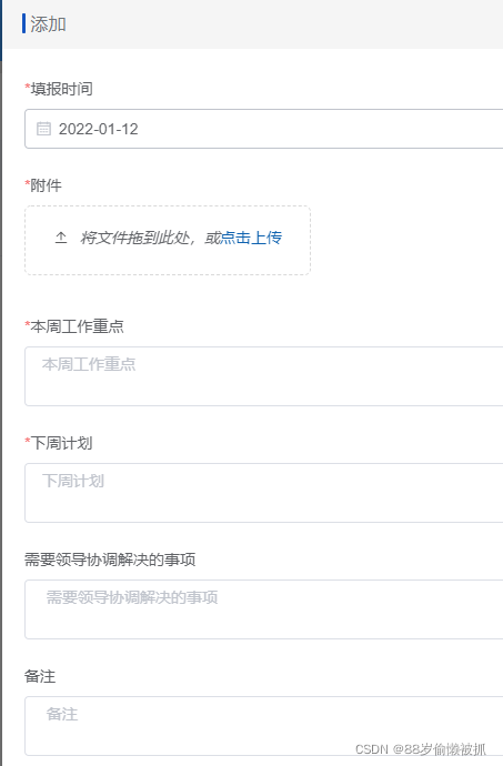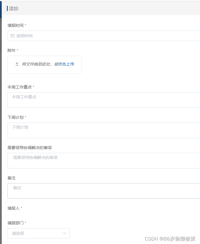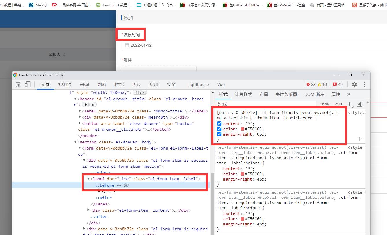 rules: { time: [{required: true,message: "请选择填报时间",trigger: "blur"}当我们给表单的某一项添加requested:true的时候,会默认在那一项的label左面出现一个红色标记